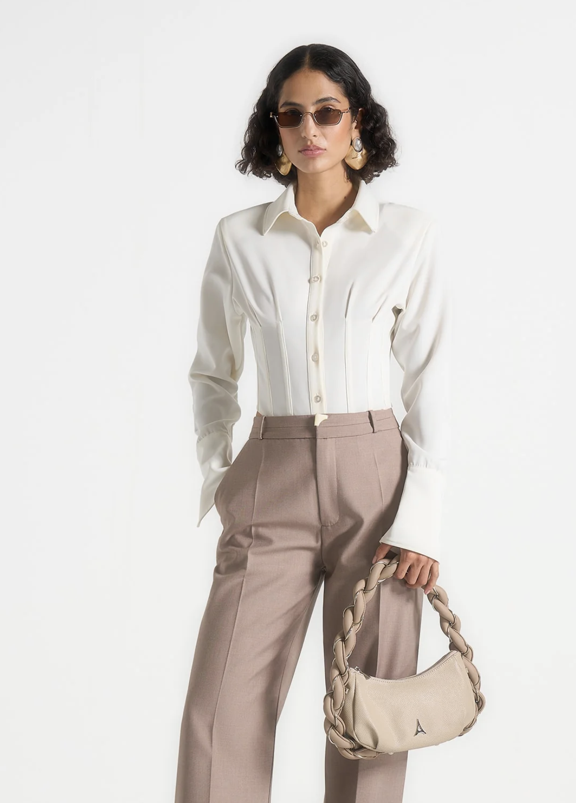 The Agnes – Corset Shirt Bodysuit redefines classic tailoring with a contemporary, sculpted silhouette. Designed in off-white, this piece blends structure and comfort, offering a contoured shirt design that flatters the figure while maintaining ease of movement.
