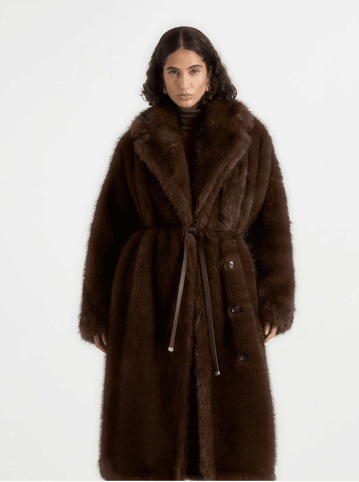 The Oversized Faux Fur Belted Coat embodies modern luxury through a harmonious blend of texture, structure, and sophistication. Defined by its sumptuously soft faux fur fabric, this piece delivers an elevated tactile finish and warmth, making it an essential statement layer for the season.