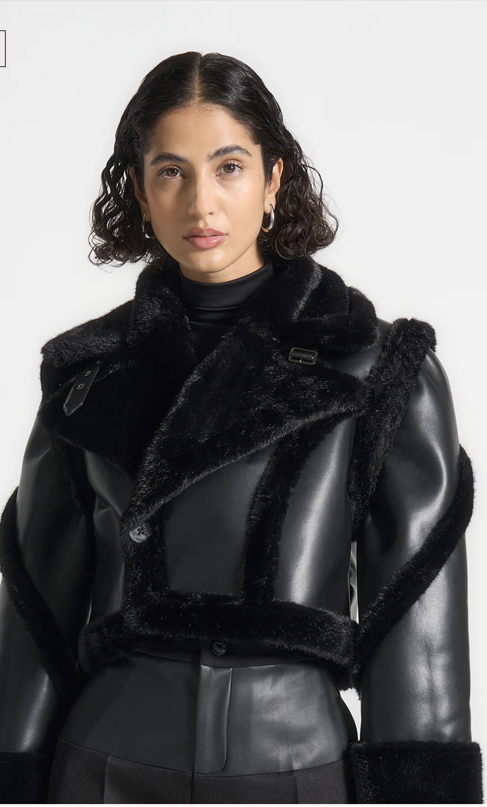 - Contrasting faux fur collar and hem for a bold, elevated accent