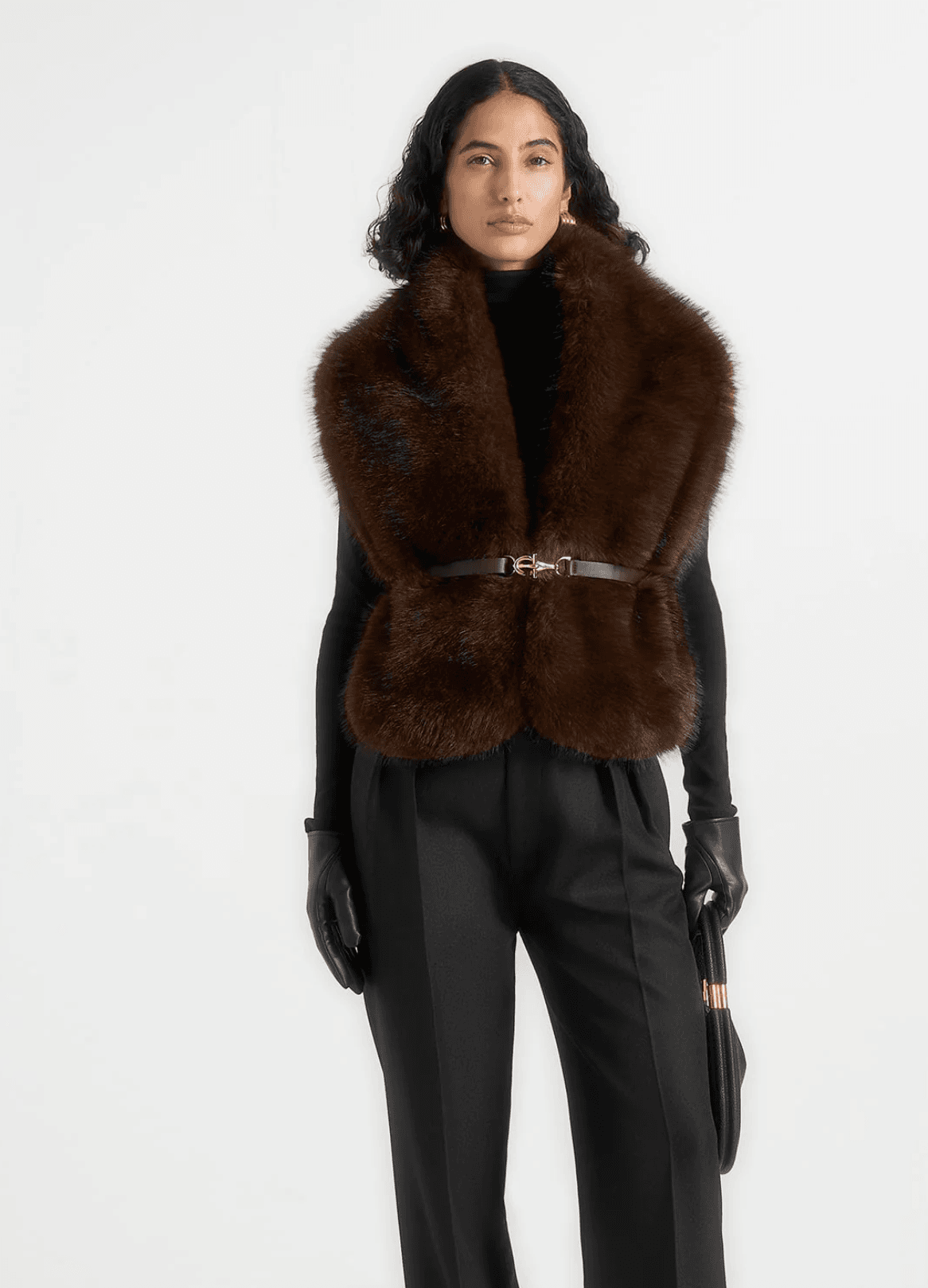 Wear cinched with the detachable belt for a sculpted silhouette or open for effortless layering. Complete the look with the matching faux fur hat to achieve a cohesive, fashion-forward ensemble suitable for both casual and occasion settings.